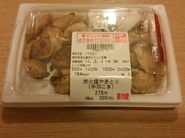 そして、今回購入したおつまみは「炭火塩やきとり 手羽こま」です。