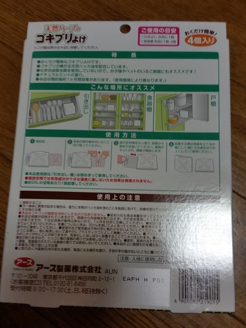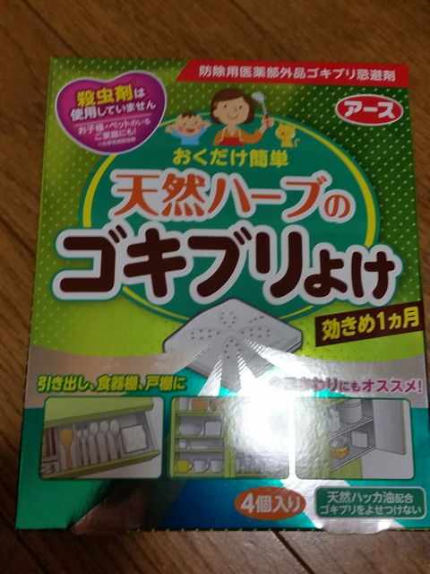ちなみに本来は、ゴキブリよけなので、食器棚、引き出し、戸棚などに入れます。