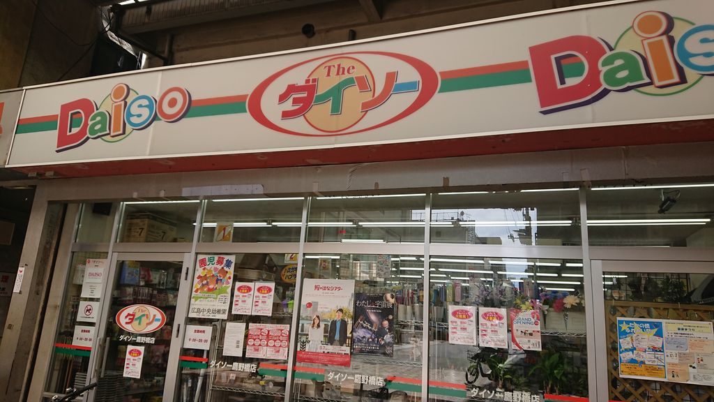 後、何気に食事が美味しい店もあるので、もっと探索したいんですけどね。そして、このあたりで100円均一を探しているならダイソーが便利です。ダイソーは広島創業なんですよね。