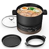 【一台多役】深鍋寸法:直径17cm×深さ8cm、お湯を沸かすのはもちろん、しゃぶしゃぶやラーメンまで楽しめる。煮る、焼く、炊くと様々な場面でも大活躍!1人鍋は一人暮らしの方に最適です。付属プレート次第で、定番の鍋料理のほか、焼肉・パエリア・串カツなどにも対応できます。電気グリル鍋は様々な場面でも大活躍!