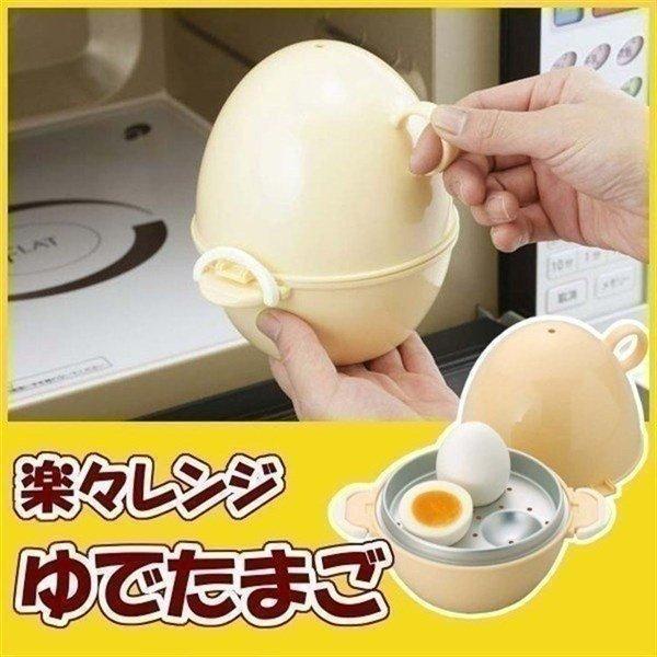 ●たまごの黄身が片寄らず、きれいなゆでたまごができます ●1回3個までできます ●たまごと水を入れ、電子レンジで加熱するだけ ●加熱時間は3個の場合、約8~11分で半熟・普通・硬めの調節ができます