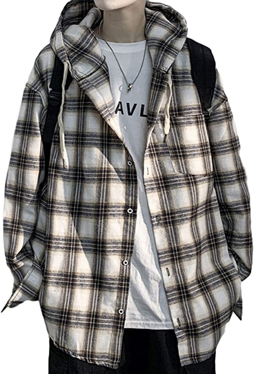 [ビーエヌワン セレクト] チェック パターン シャツパーカー ビックシルエット ストリート カジュアル 長袖 メンズ