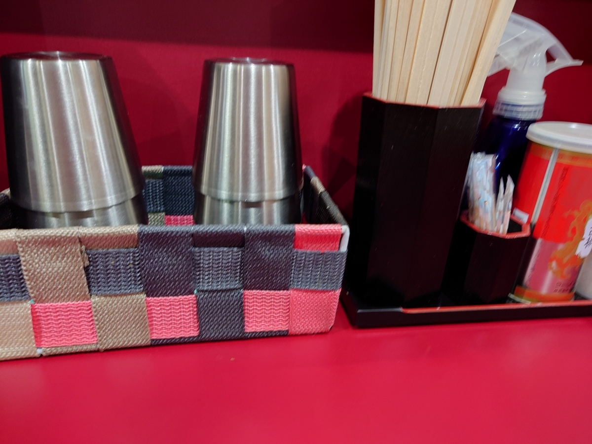 「食券制、お冷やは各席にグラスとウォーターポットが有るのでセルフで。