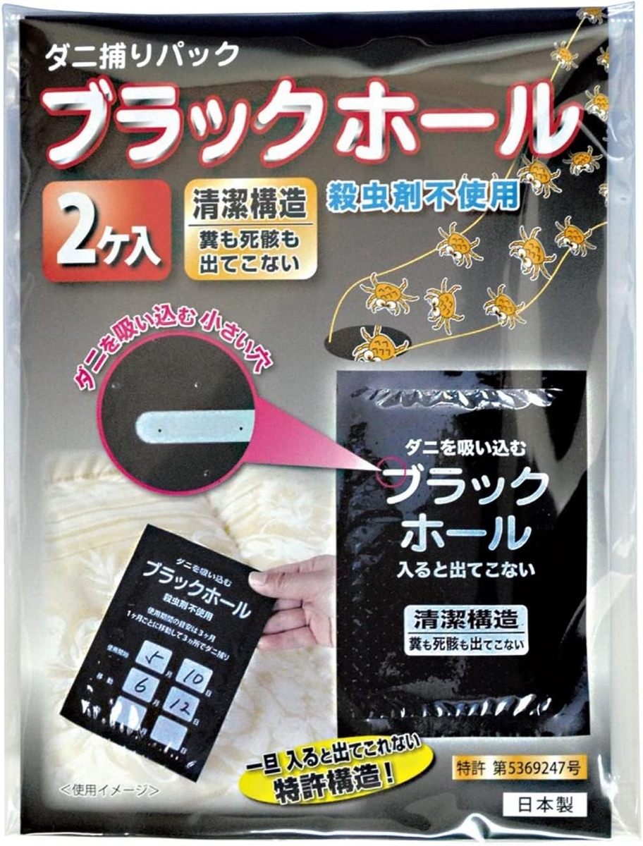 ダニ対策が必要ですが、夏場、夜寝る時に布団が痒い ブラックホール ダニ捕りパック 殺虫剤不使用 ダニにかまれなくなると高評価です。