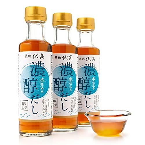 築地 伏高 濃醇だし(濃厚15倍)200ml x 3本セット 希釈タイプの和風だし 化学調味料無添加 酵母エキス無添加・不使用