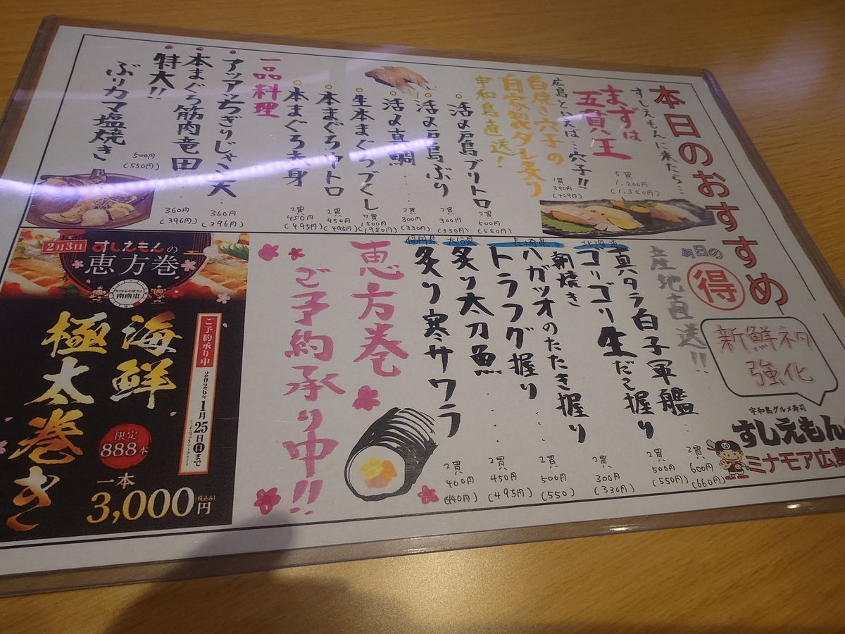 このミナモアにあるお寿司屋さんがあったので、味見がてら覗いてみました。