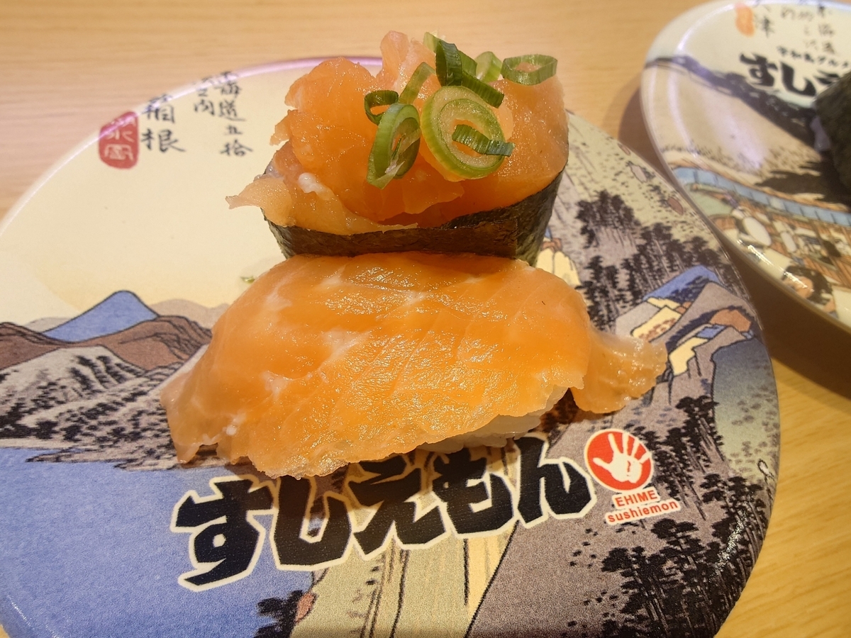 子供が好きなのでサーモン。生サーモンが1貫で198円。回転ずしと比較するとやっぱり高いですが、その分、味が楽しみです。